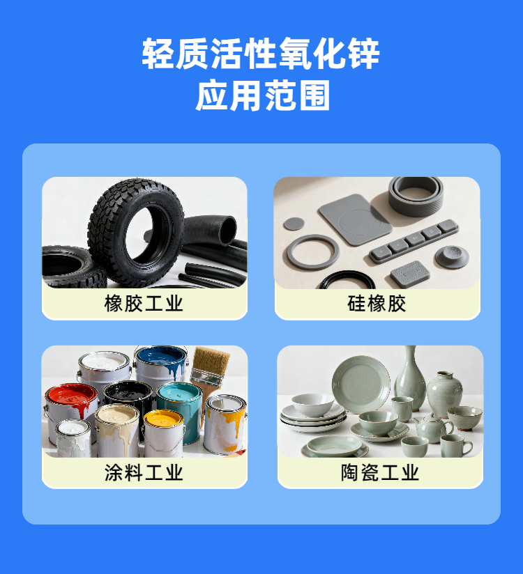 本品采用成熟的 濕法 生產(chǎn)工藝(通常以優(yōu)質(zhì)鋅鹽為原料,經(jīng)精密合成、過濾、低溫干燥等特殊工序制得),是一種具有 較高比表面積 、 較低堆積密度 和 良好反應(yīng)活性 的白色或微黃色微細粉末。其顆粒形態(tài)疏松,具有輕質(zhì)、易分散的特點。本品主要應(yīng)用于橡膠、硅橡膠、涂料、陶瓷等對分散性和比重有特定要求的工業(yè)領(lǐng)域。