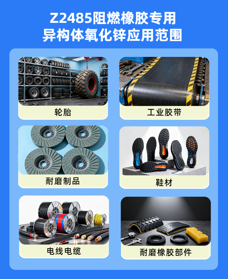 (特定條件下)在燃燒過程中可能有助于一定程度上減少煙霧的產(chǎn)生。同時,氧化鋅具有良好的導熱性,有助于橡膠制品(如輪胎)的散熱。